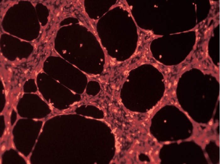 After the gel has been pipetted into the inner well and given time to solidify, the cells can be seeded on top of it for tube formation analysis. Due to the “well-in-a-well” technology, the amount of gel needed is reduced to only 10 μl per well, which is 10% of the amount used in regular multiwell plates.