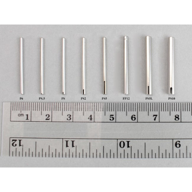 The Floating Tube pins vary in diameter from 0.229 mm to 0.914 mm, they also vary in the total length of the pin (from 33 to 62.2 mm) and the length of the exposed pin (from 12 to 17 to 30 to 41.5 mm) long. The exposed length terminology is used to define how far the pin is able to extend below the bottom float plate.