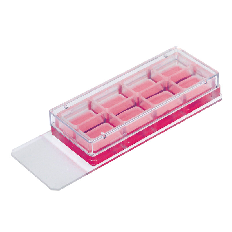Chamber slide with a removable 8 well silicone chamber for cell culture and immunofluorescence staining