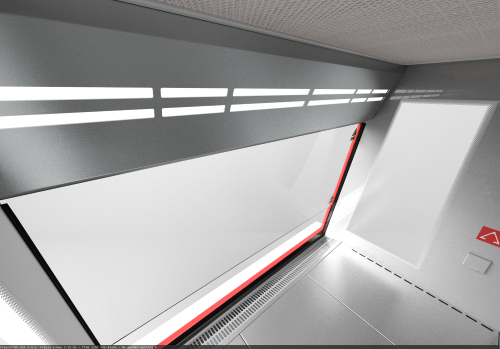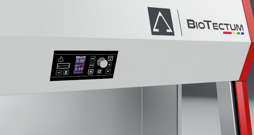 Two high-quality electronically commutated fans from ebm papst in a V-shape (Zephyro System) to guarantee ideal laminar distribution as well as low current consumption and low noise emissions. Two temperature-compensated airflow sensors, one for laminar flow and one for protective curtain measurement.
