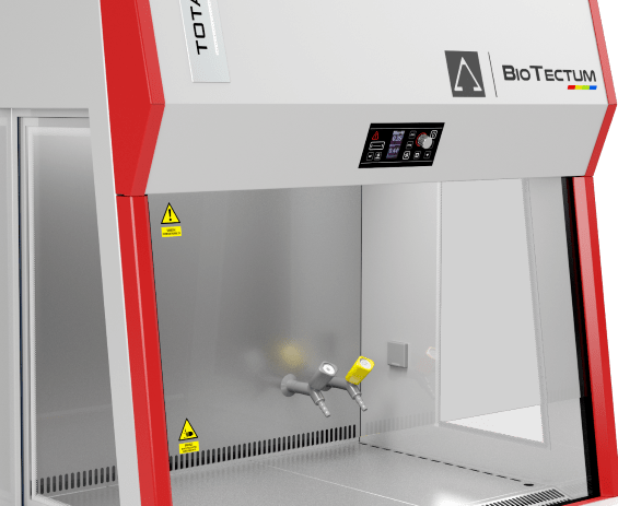 Connections such as flammable gas, inert gas and electrical supply are located at the top of the chamber, so there are no wires protruding beyond the chamber’s contour. Biotectum chambers can be moved closer to furniture or walls.
