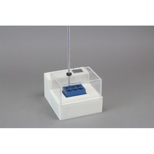 ChillStat® reaction chilling Peltier unit holds single chill block (not included). Chills down to 0 degC (setting 1) or -18 degC (setting 2). Lid deters any frost formation and allows thermometer (included) to reach chill block. Includes collar to allow use of 20mL scintillation vials (up to 100mm) 110-220 Volts, 50/60 Hz, CE compliant.