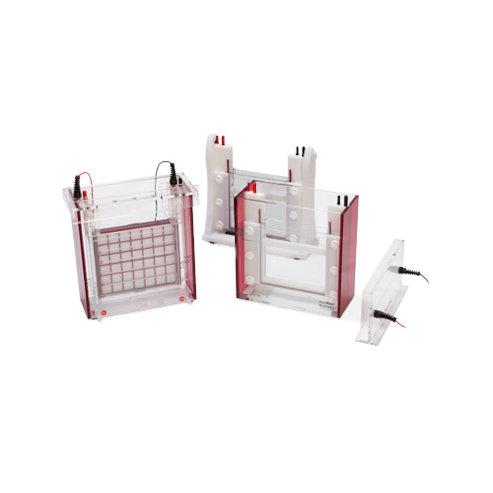 With Biometra Eco-Line, Analytik Jena offers a robust, modular tank system for PAGE electrophoresis and blotting applications to support you in your protein analysis. Specially designed for everyday use, gels can be casted quickly, easily and in a space-saving manner in the electrophoresis module. The unique high-tech sealing material used in the gel casting stand ensures leak-free gel casting. Glass plates with fixed spacers also facilitate handling and help you to save valuable time in routine laboratory work. In addition to the comfortable option of running 2 - 4 gels simultaneously, the modular tank design also extends the range of applications.