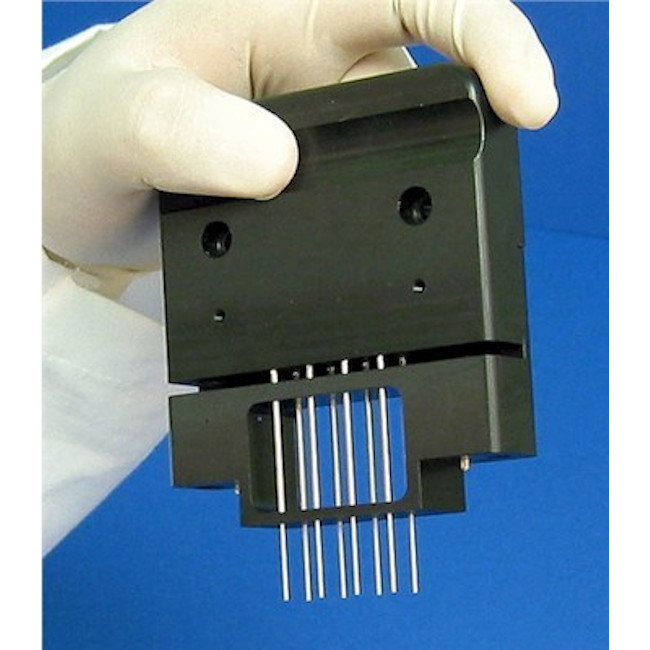 Because of the unique way the pins are positioned in the two Glass Slide Replicators 8 pin - VP 478 -9 mm pitch, 96 well, and 32 pin - VP 478A - 4.5 mm pitch, 384 well, they each have to be used with their specific Microplate Indexing System.