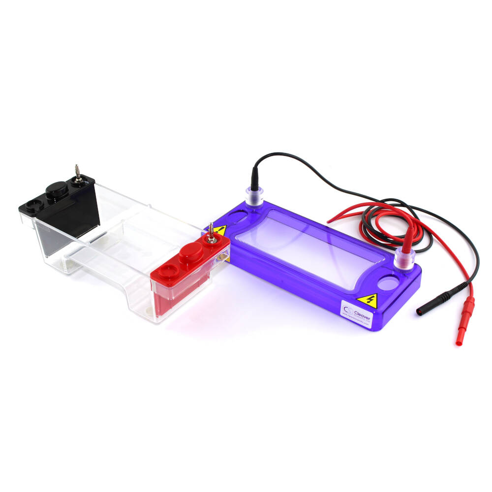 These industry standard tanks come in three sizes -to run six gels, four gels or a single gel. The gel trays are UV transparent and measure 7x7cm, each tank comes with two combs and two casting dams per gel tray. Supplied with highly flexible cable and connectors which are CE compliant, providing complete electrical isolation and safety.They have a special manufactured safety cover, which completely covers the tank of the system, making it one of the safest available.Cleaver Scientific Ltd is a member of the UK organisation CLEAPPS who use the TGT range for their training work shops. (Consortium of Local Education Authorities for the Provision of Science Services)
