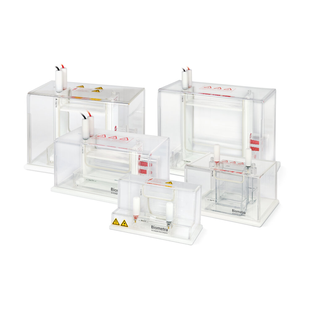The Biometra Minigel-Twin is a vertical protein gel electrophoresis system that allows an efficient separation of proteins. Based on a optimized design, a fast and reliable analysis of your samples meets excellent resolution. Simplify your daily lab routine and convince yourself of the remarkable ease-of-use.