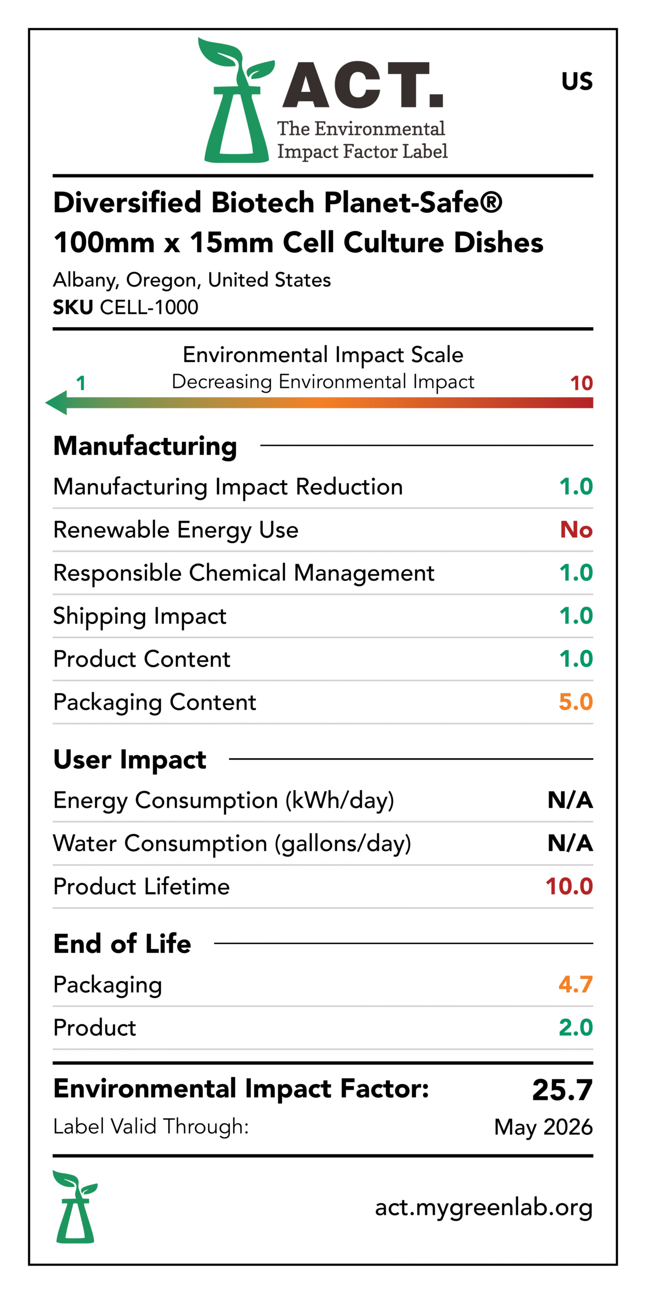Planet-Safe® Petri dishes and microplates from Diversified Biotech are made from polylactic acid (PLA), abiodegradable and compostable thermoplastic resin derived from a variety of non-GMO renewable resources such as sugar beets, sugarcane and corn.