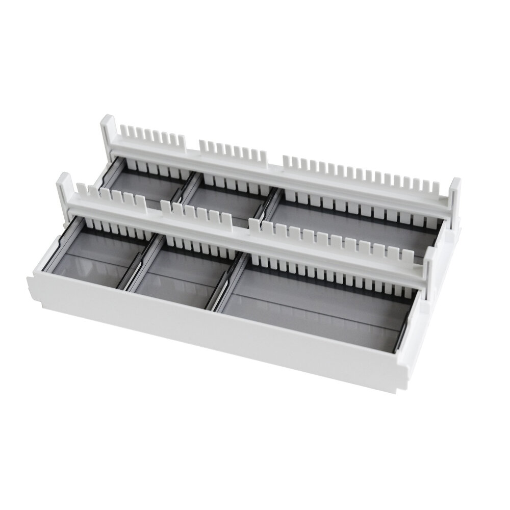Printed gel tray makes gel loading easier. Place the tray into the casting stand, pour the gel directly into the tray, put the combs in place, and let it set! Remove the tray with the gel and transfer it directly to the RunOne electrophoresis unit.