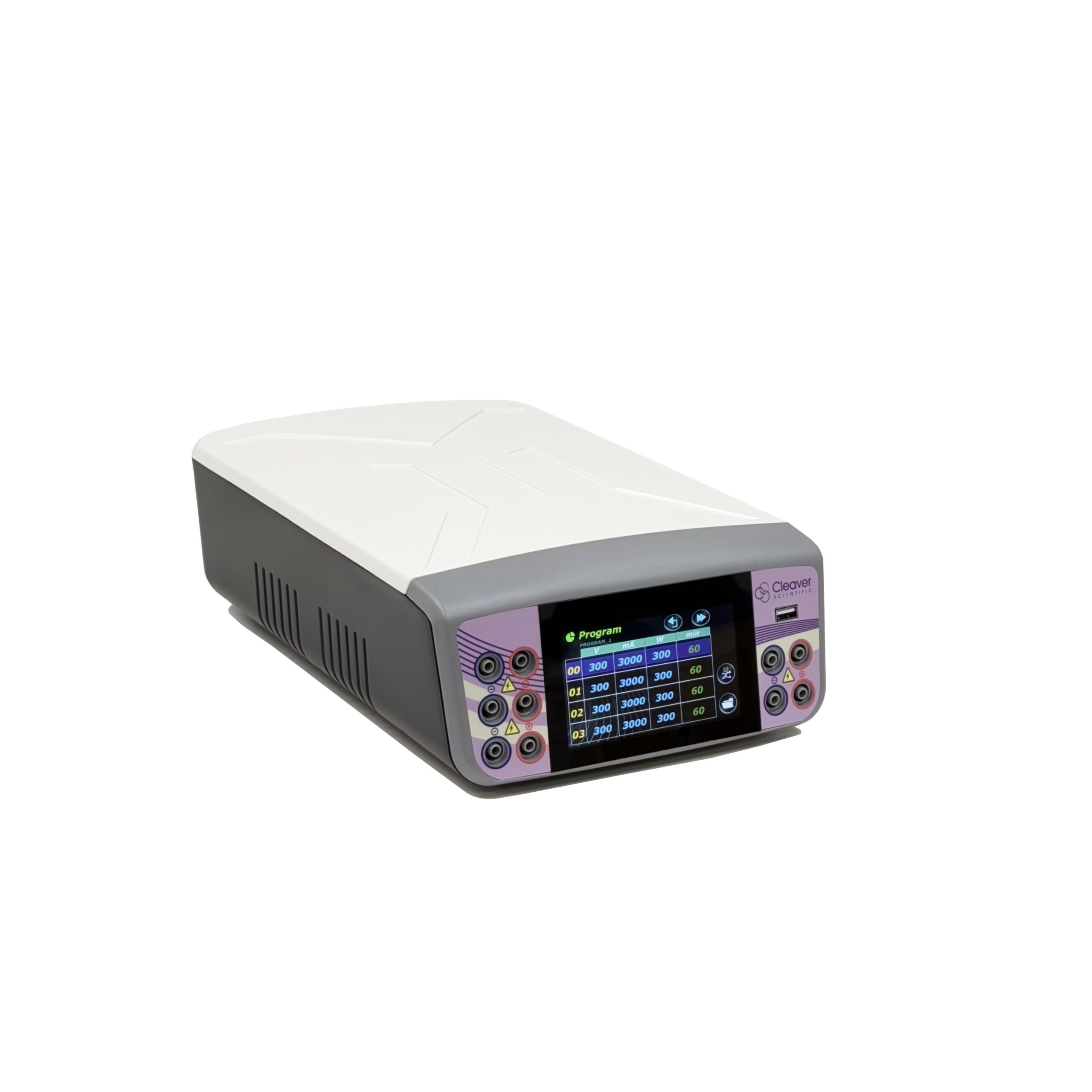 At 300V, 3000mA, 300W, the PowerPro 3AMP-M2 touch screen power supply is designed for virtually all high-current electrophoresis applications. The PowerPro 3AMP’s higher current output capability is perfect for electroblotting units with high-intensity plate electrodes, particularly Cleaver Scientific omniBLOT maxi, VS20 WAVE, and semi-dry blotting systems.