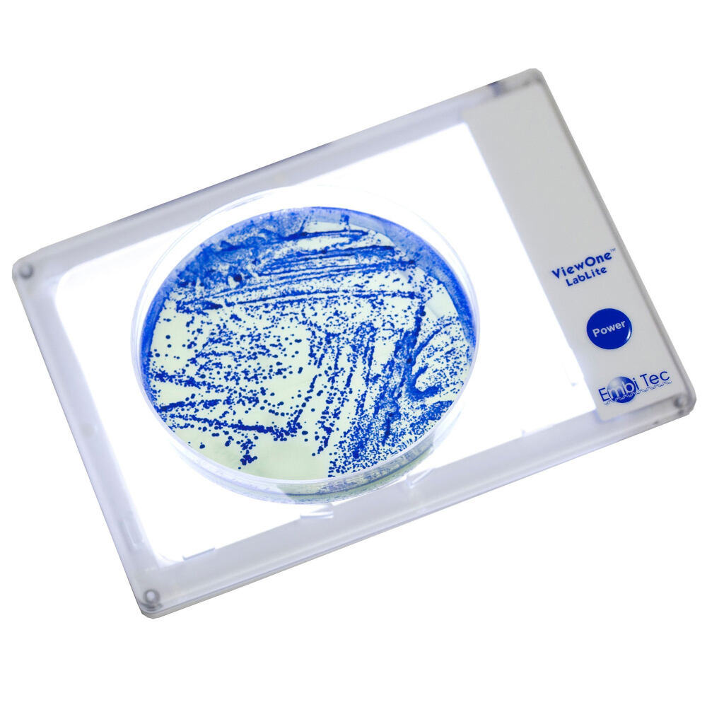 Water resistant, ultra-compact light box brilliantly illuminates your samples and provides an additional backlight to your imaging system or microscope. The built-in retainer for Petri dishes, agar plates, and 96-well plates hold your samples in place. Simply plug in and turn on the LabLite and place your plate or use the 96-well plate template (included) to see your sample with a new light! White LEDs with 3 selectable intensities provide illumination that is right for your sample and your room.