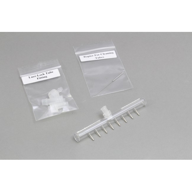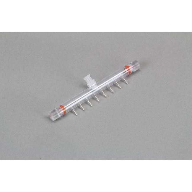 8-Channel Manifold, Polycarbonate, 96 well format, 19 gauge tubes, 7mm long, 9mm spacing.